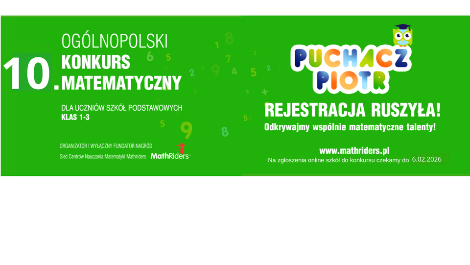 Ogólnopolski Konkurs Matematyczny PUCHACZ PIOTR, edycja XOpublikowano: 2026-01-04Czytaj więcej Ogólnopolski Konkurs Matematyczny PUCHACZ PIOTR, edycja X