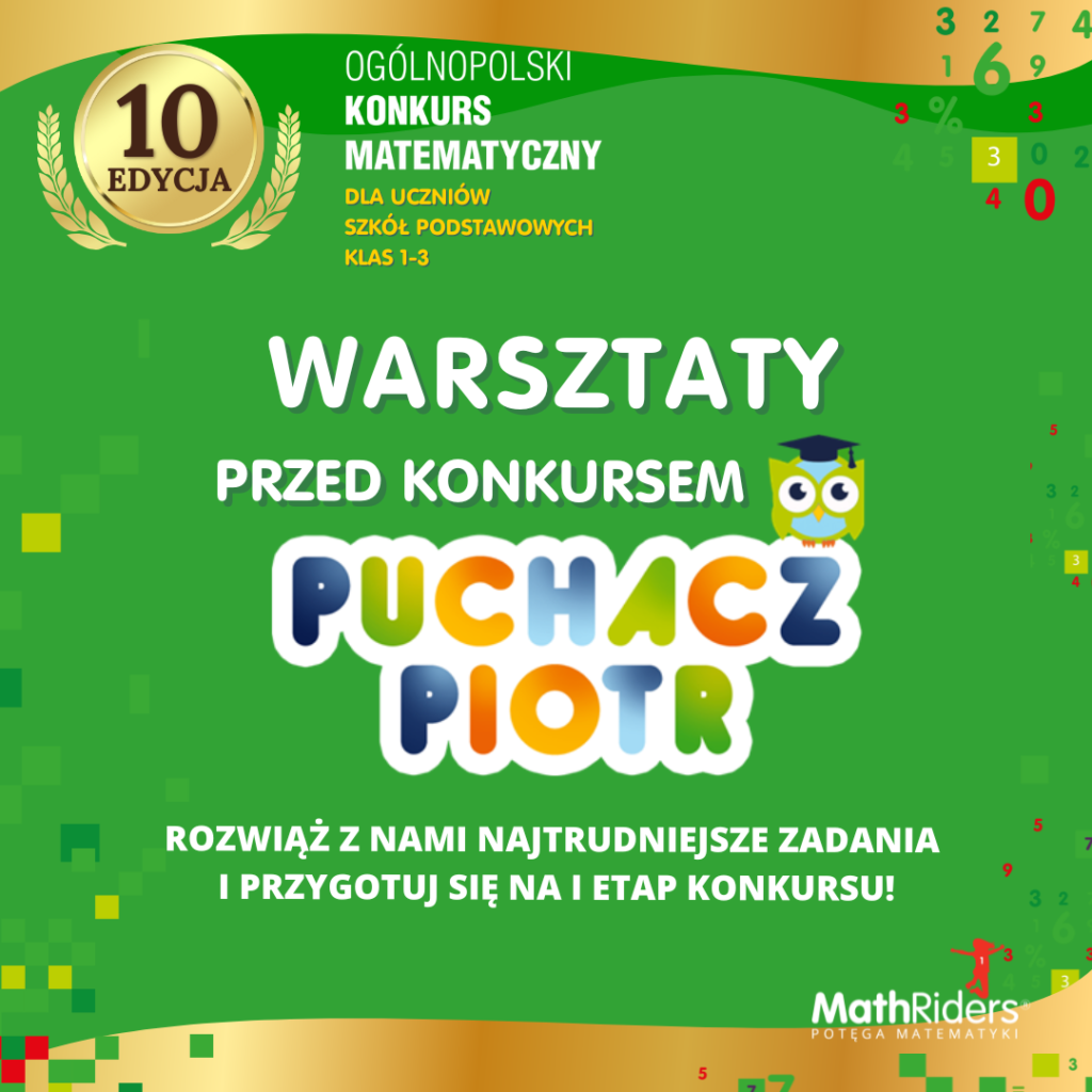 Już za niecały miesiąc odbędzie się I etap konkursu matematycznego „Puchacz Piotr”. Aby uczniowie mogli się do niego jak najlepiej przygotować, zapraszamy na specjalne warsztaty matematyczne. Podczas warsztatów będzie można poznać zadania, które okazały się największym wyzwaniem w poprzednich edycjach konkursu i rozwiązać je pod okiem Puchacza Piotra, poćwiczyć to, co sprawia największe trudności. Będzie też sporo wspólnej matematycznej zabawy.